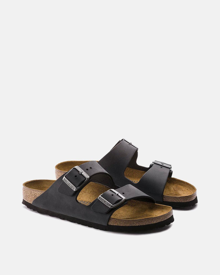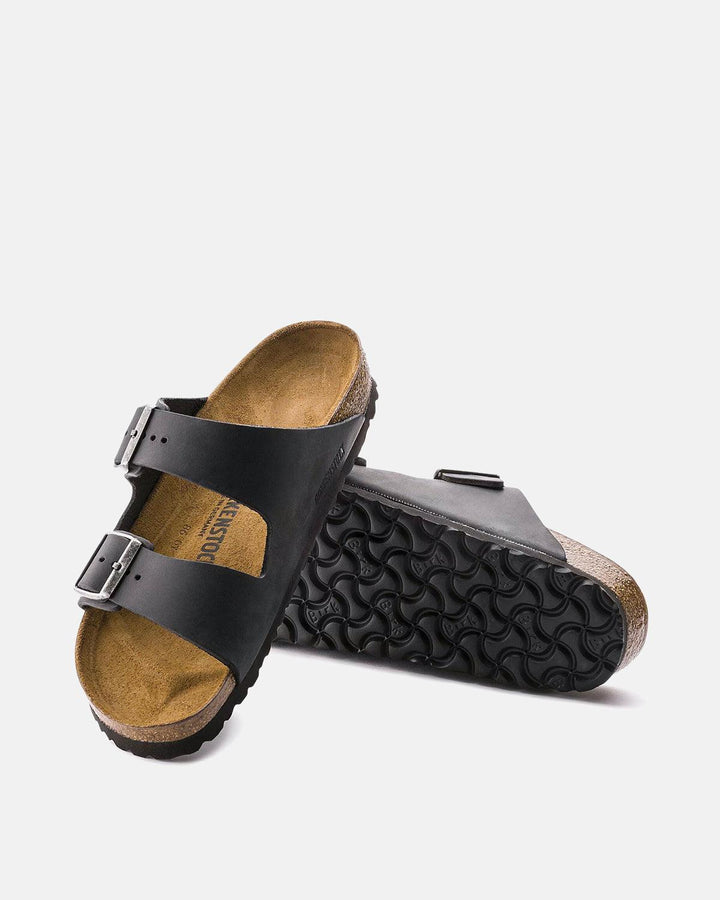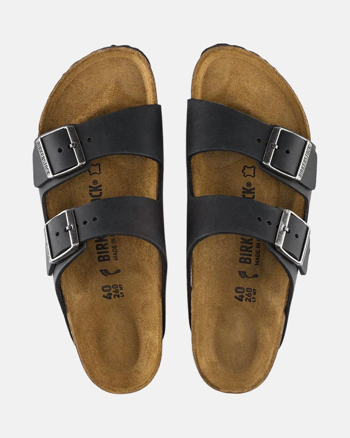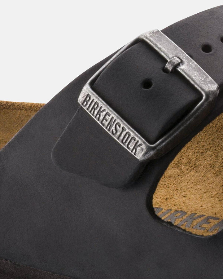 BIRKENSTOCK WOMENS ARIZONA OILED LEATHER NARROW FIT SANDALS BLACK