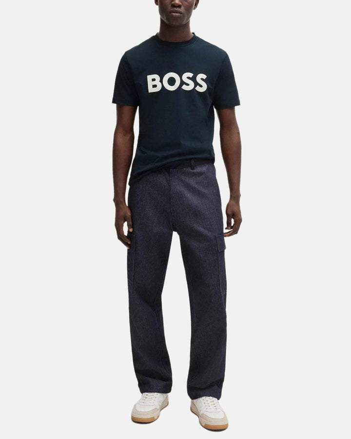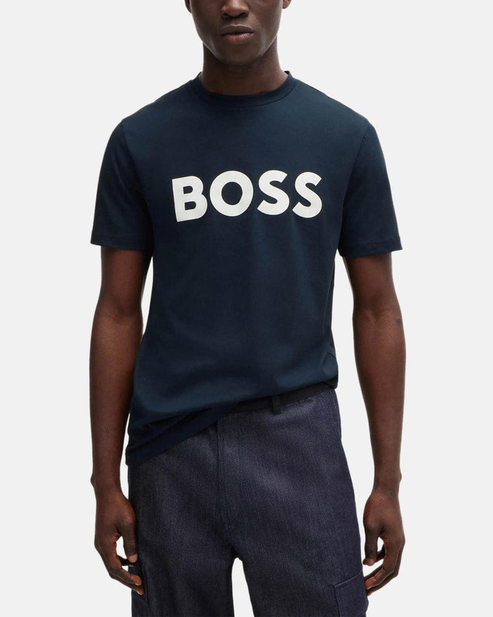 BOSS MENS STYLE THINKING 1 T-SHIRT DARK BLUE WHT
