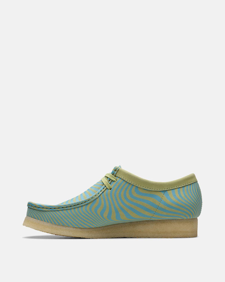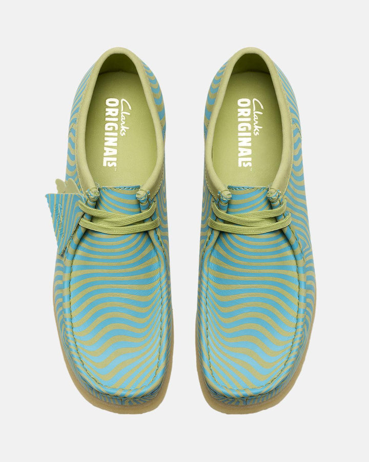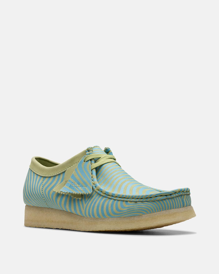 CLARKS ORIGINALS MENS WALLABEE SHOES BLUE LIME PRINT