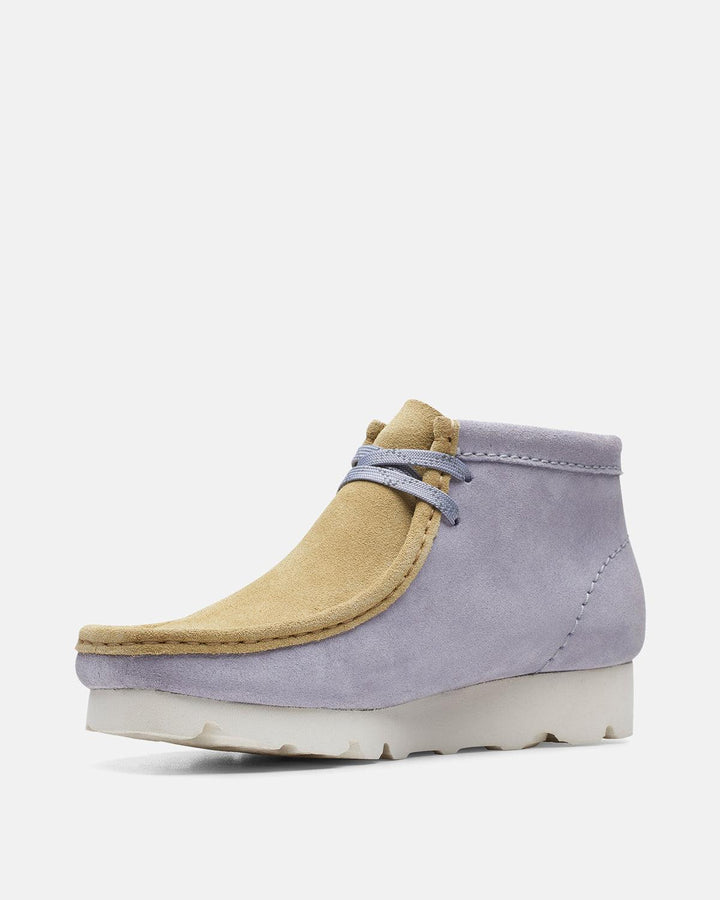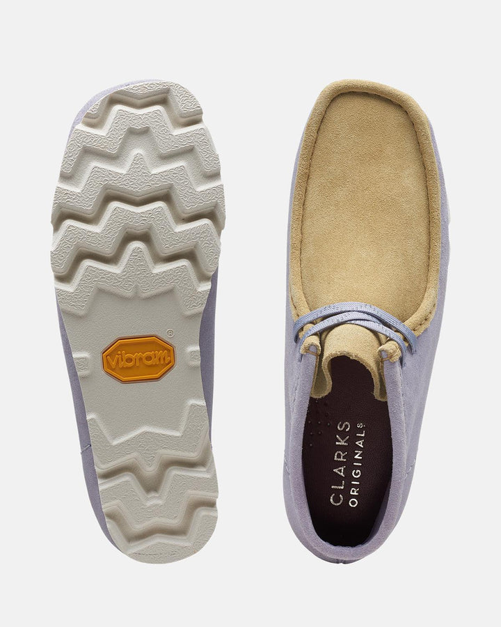 The Wallabee has become an icon in the Clarks Originals collection across the globe thanks to its moccasin construction and structural silhouette. Giving this lace-up boot a contemporary twist, the upper has been crafted from two shades of Steads suede that have been finished with a Scotchguard treatment to offer water and stain resistance. A lightweight Vibram results in enhanced grip and flexibility.