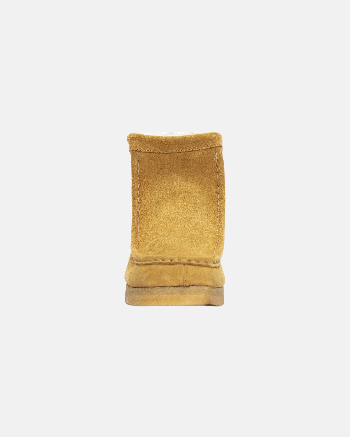 Wallabee Hi is back to brave the chill with its snug shearling linings and high cut profile. Premium suede uppers in a warm tanl colourway make for ultra-versatile styling – while Clarks' inimitable pebble crepe sole and crafted stitching nod to the Original Wallabee.