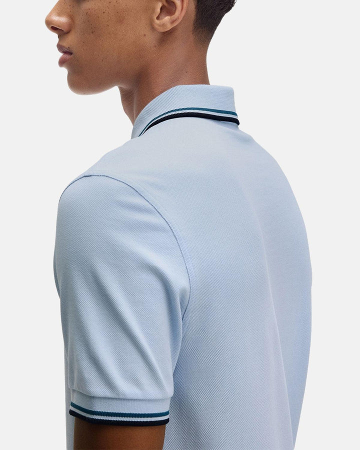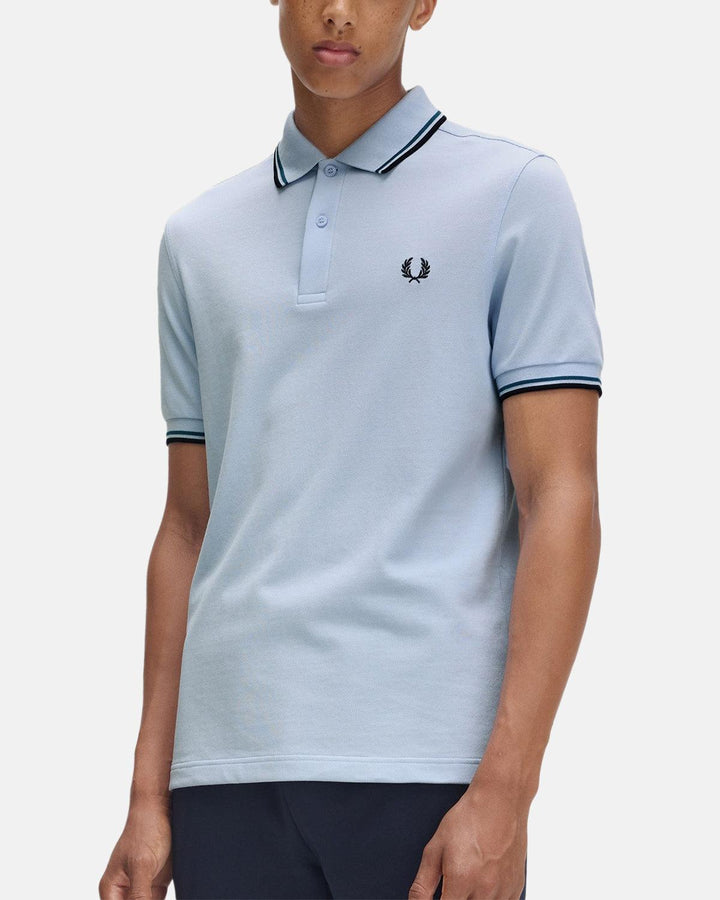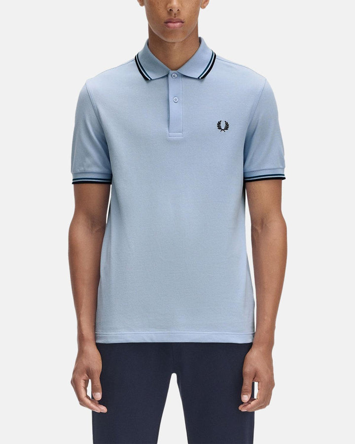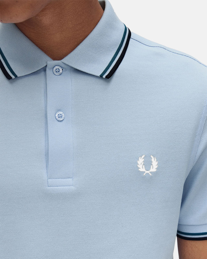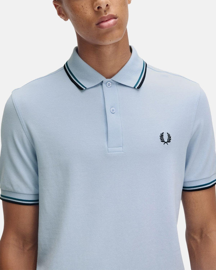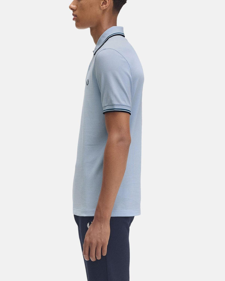 FRED PERRY MENS M3600 TWIN TIPPED POLO SHIRT LIGHT SMOKE PETROL