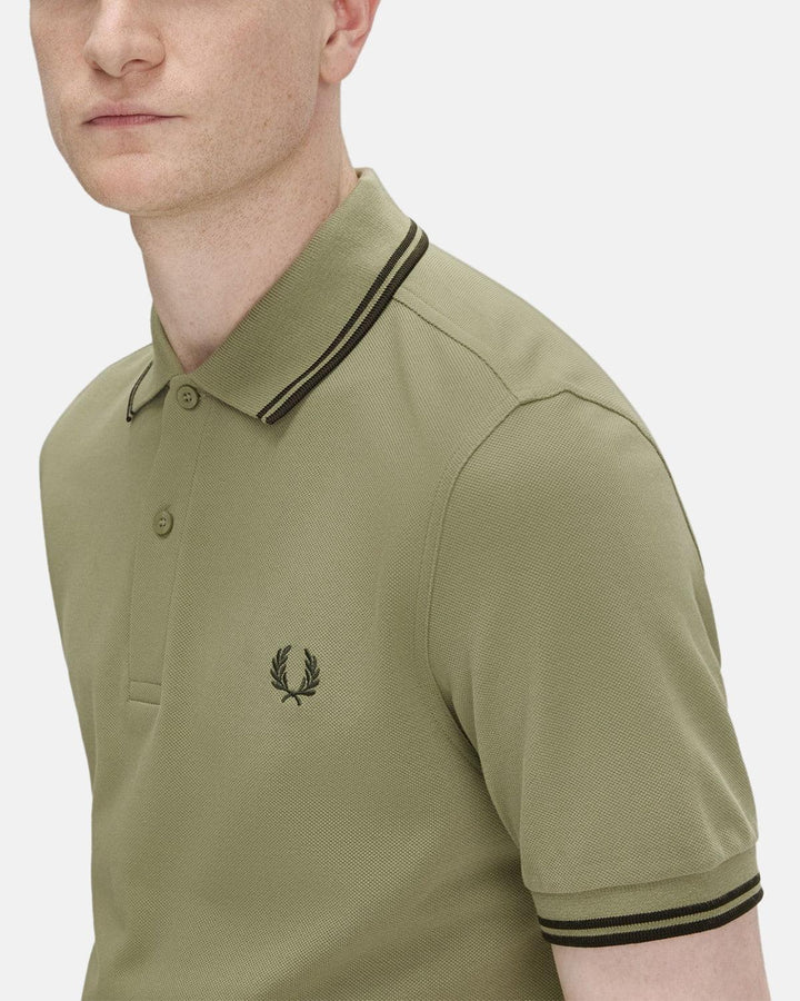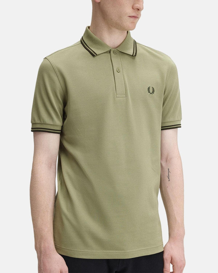 FRED PERRY MENS M3600 TWIN TIPPED POLO SHIRT OLIVE MINT NIGHT GREEN